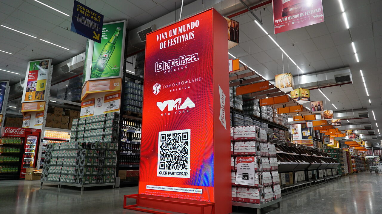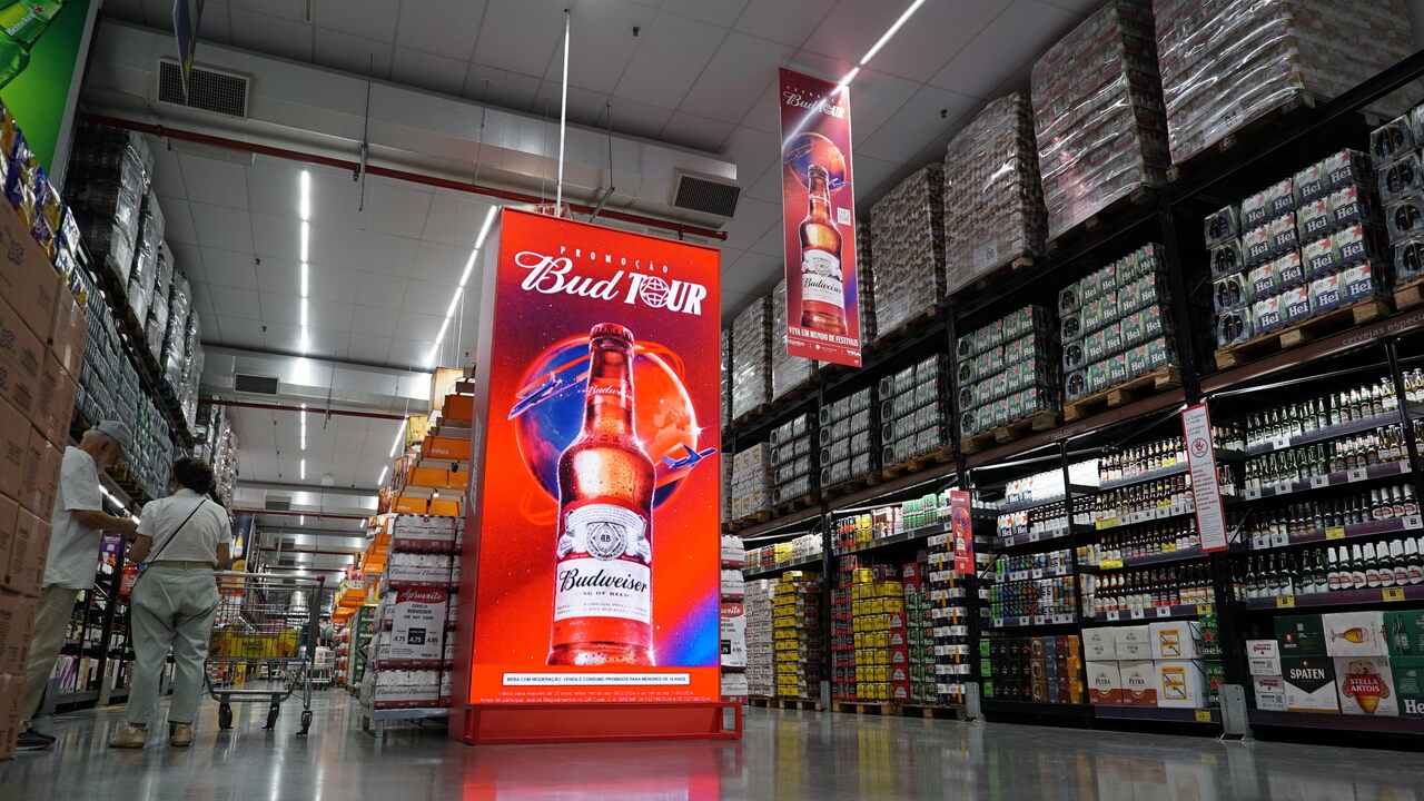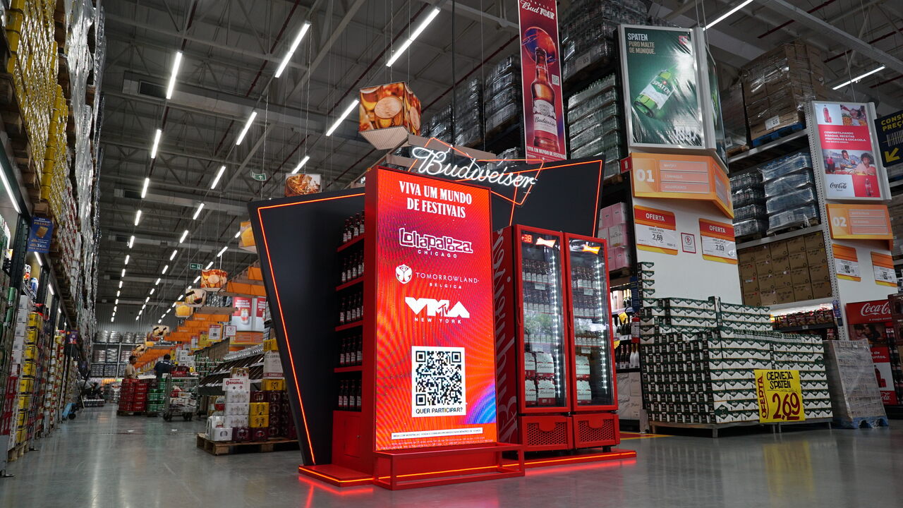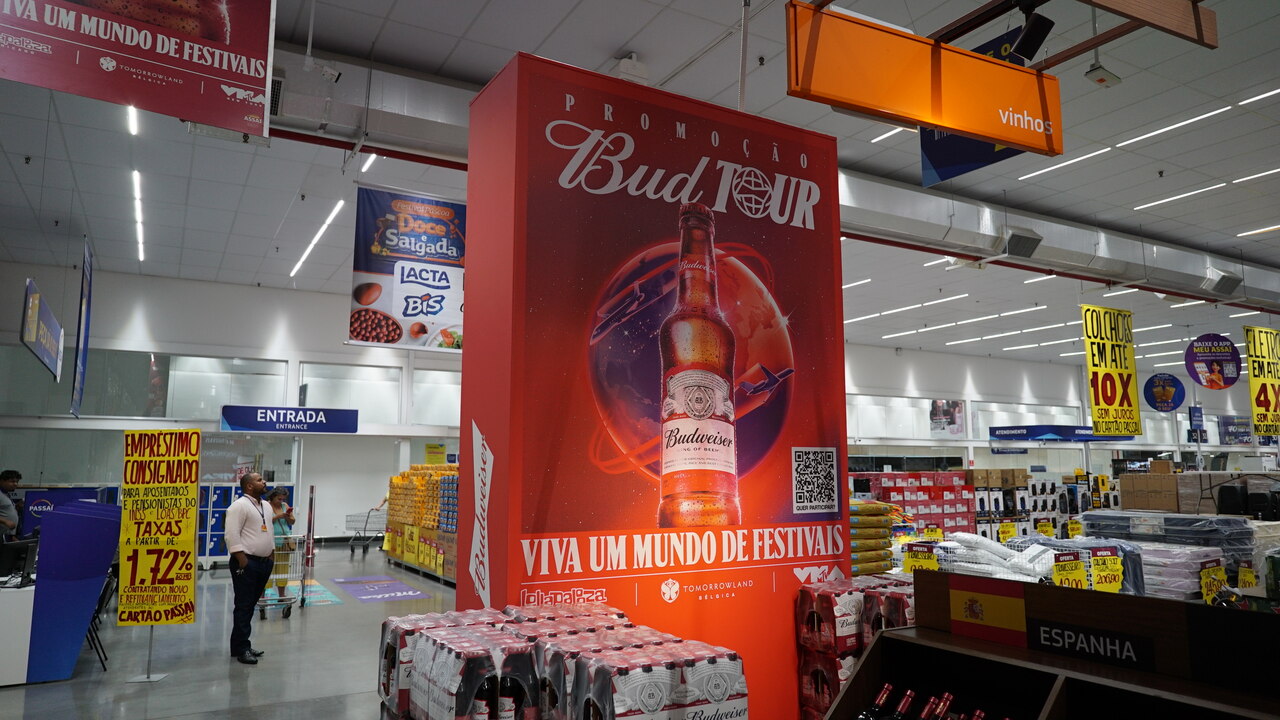 A Ação Bud Tour 2024 realizada em parceria com o Assaí aconteceu em duas lojas de São Paulo com telas digitais, estande e material de ponto de venda.